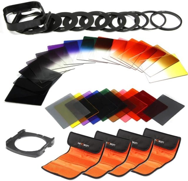 I filtri a lastra sono delle lastre di vetro poste davanti all’obiettivo. Normalmente la lastra è di forma quadrata con un diametro di 100mm. Viene sostenuta da un anello adattatore e da un holder portafiltri.